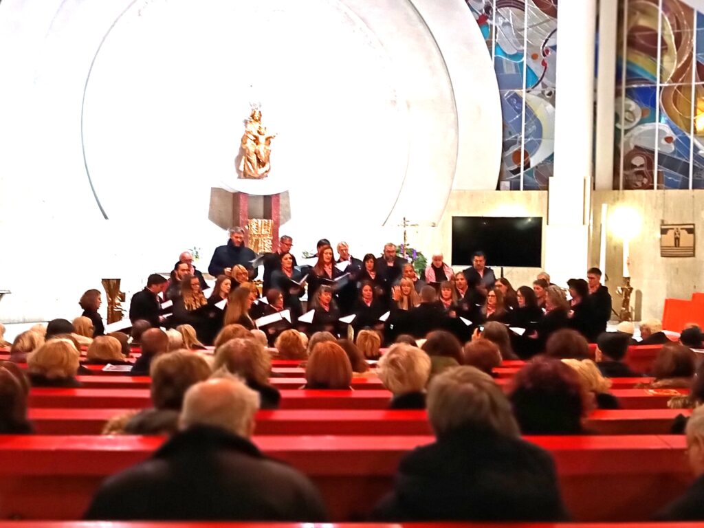 Že tradicionalni adventno božični koncert komornega zbora Hugo Wolf je bil v nedeljo, 14. decembra 2025 zvečer tudi tokrat v župnijski cerkvi na Pobrežju. Ob polni dvorani obiskovalcev pa je bil koncert tokrat drugačen, saj med nami ni bilo naše predsednice Kulturnega društva nemško govorečih žena Mostovi Veronike Haring, ki se zdravi v bolnici. Kot so člani zbora povedali že na začetku koncerta, je bil tokrat koncert posvečen prav njen, z željo po čimprejšnjem okrevanju.