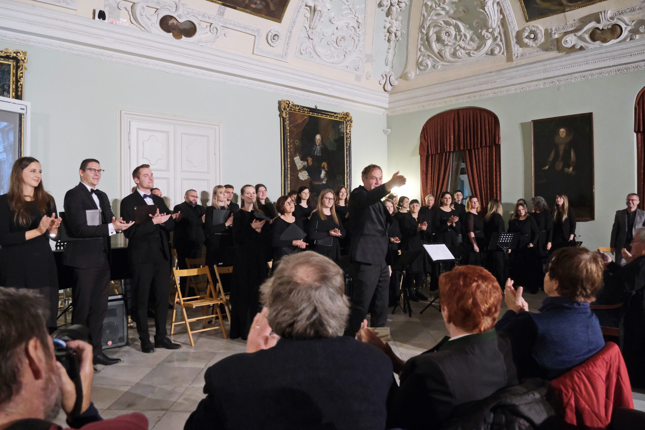 Preplet ustvarjalnega duha preteklosti in sodobnosti je še posebej zaživel s praizvedbo novitete Časa tek, skladbe skladateljice Tadeje Vulc, ki temelji na na literarni podlagi Antona Martina Slomška. Delo je v izvedbi Komornega zbora Hugo Wolf in solistov doseglo vrhunec večera in očaralo prisotne.