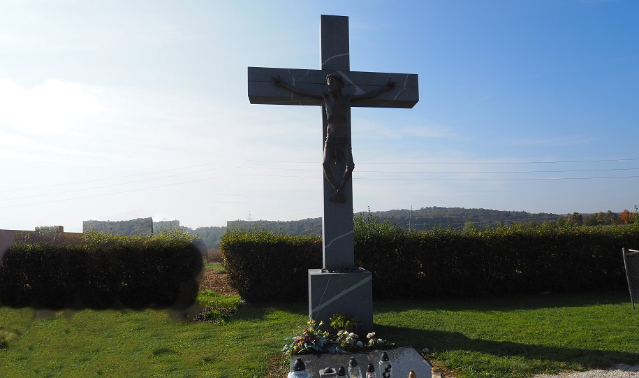 Fotografija 2: Križ na pokopališču v Ormožu in pod njim spominsko znamenje