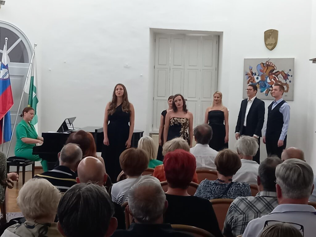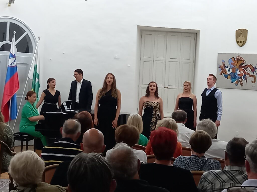 Solisti, pevke in pevci so nam ob klavirski spremljavi pianistke Adriane Magdevski tako zapeli popularne melodije, ki se jih starejši še dobro spomnimo, kot na primer Ljubim te iz firma Zauber der Boheme(1937) ali Dvoje src v tričetrtinskem taktu iz istoimenske operete in filma iz leta 1930.
