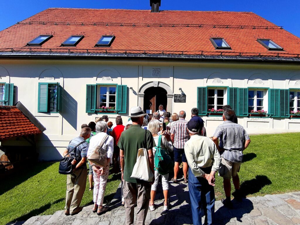 To letošnje poletno potovanje je bilo malo drugače. Najprej smo obiskali Meranovo, vinograde nad Pekrami, kjer je nadvojvoda Janez pred 200 leti kupil vinograde in je sam dal zgled za sodobno vinogradništvo. Ker je dobro poznal vinogradniške razmere na Renu in kakovost tamkajšnjih vinskih sort, se je odločil, da bo pričel najprej sam, za vzor drugim. Zaradi ugodnega podnebja, podobnega italijanskemu kraju Merano, so začeli vinograde imenovati Meranovo.